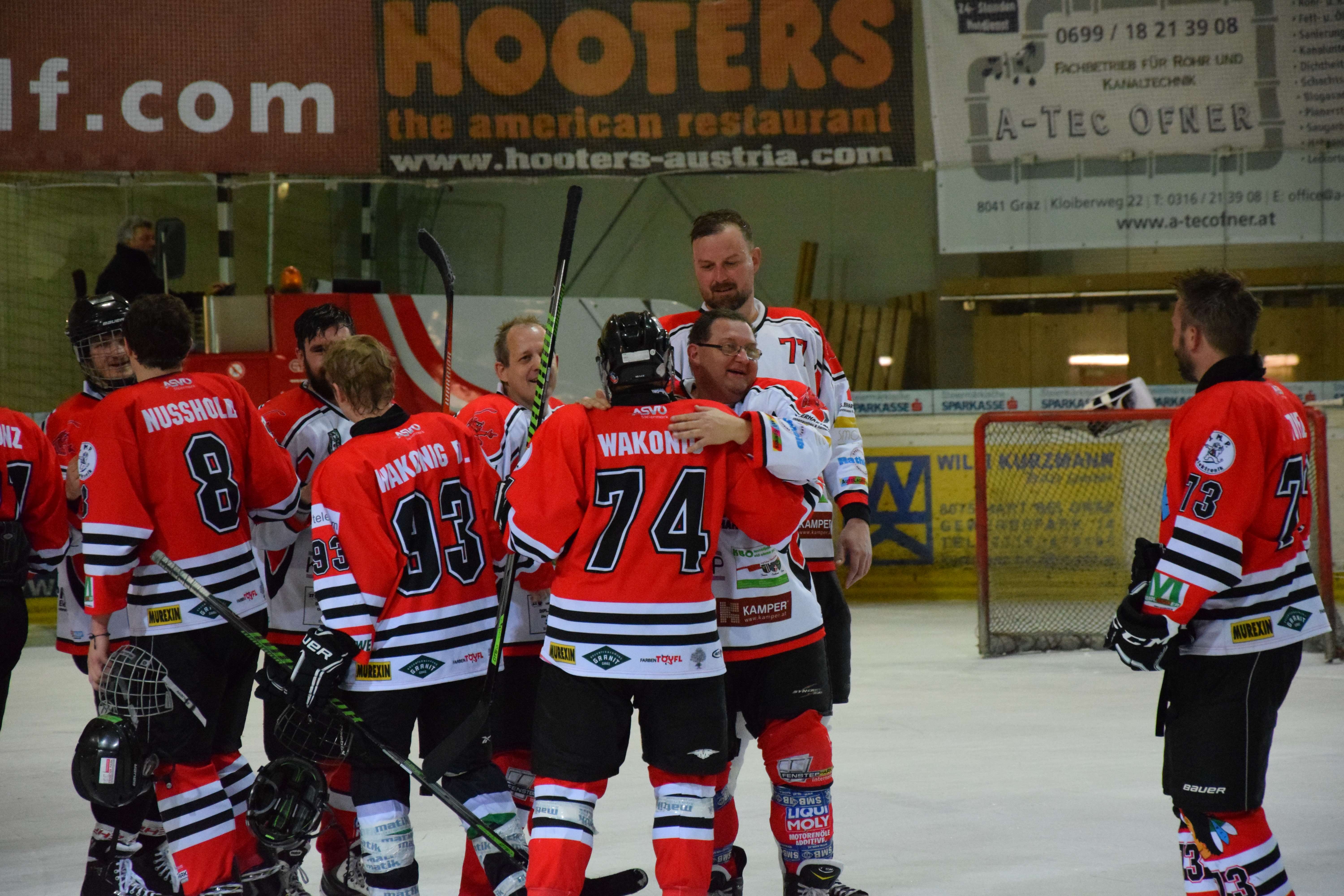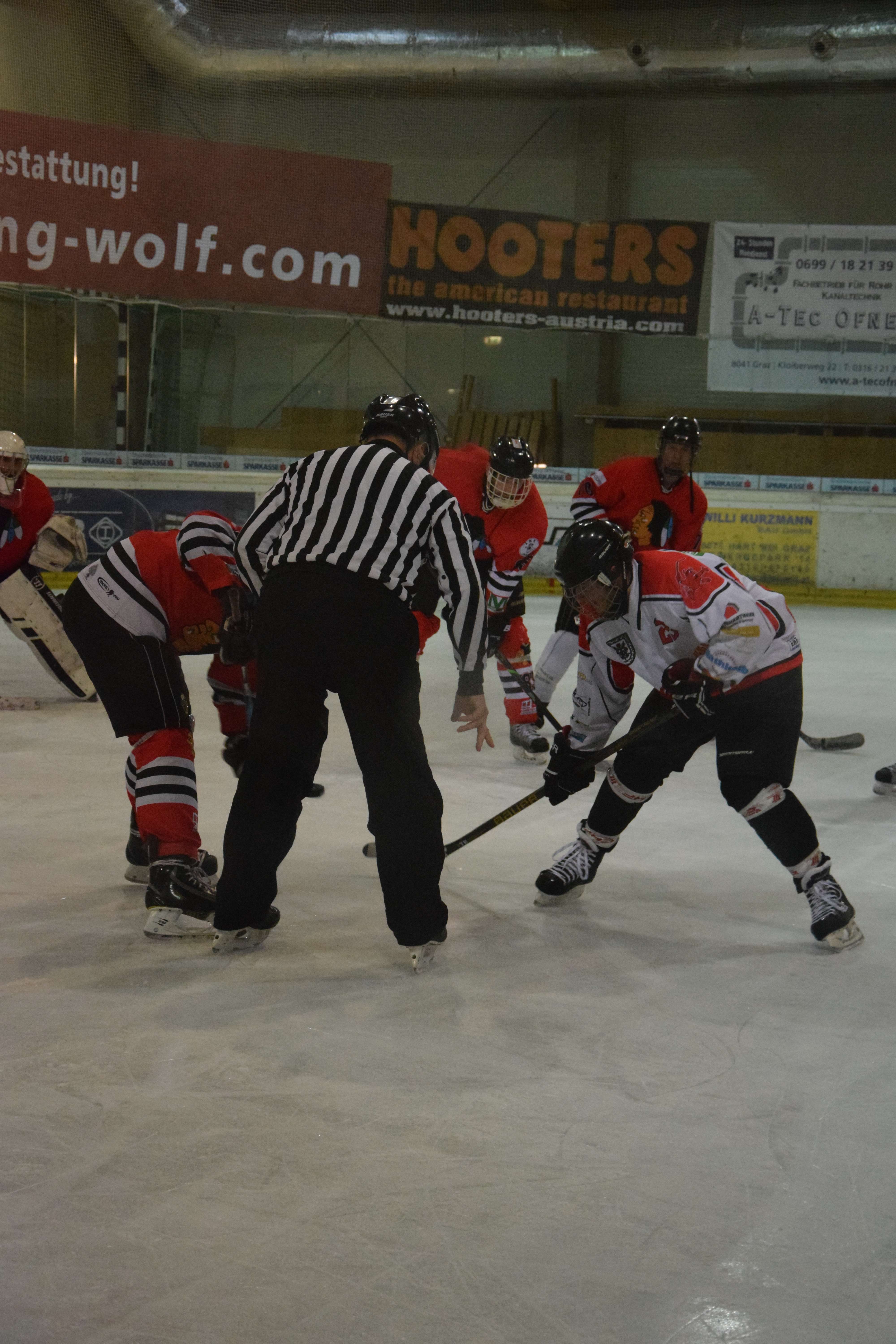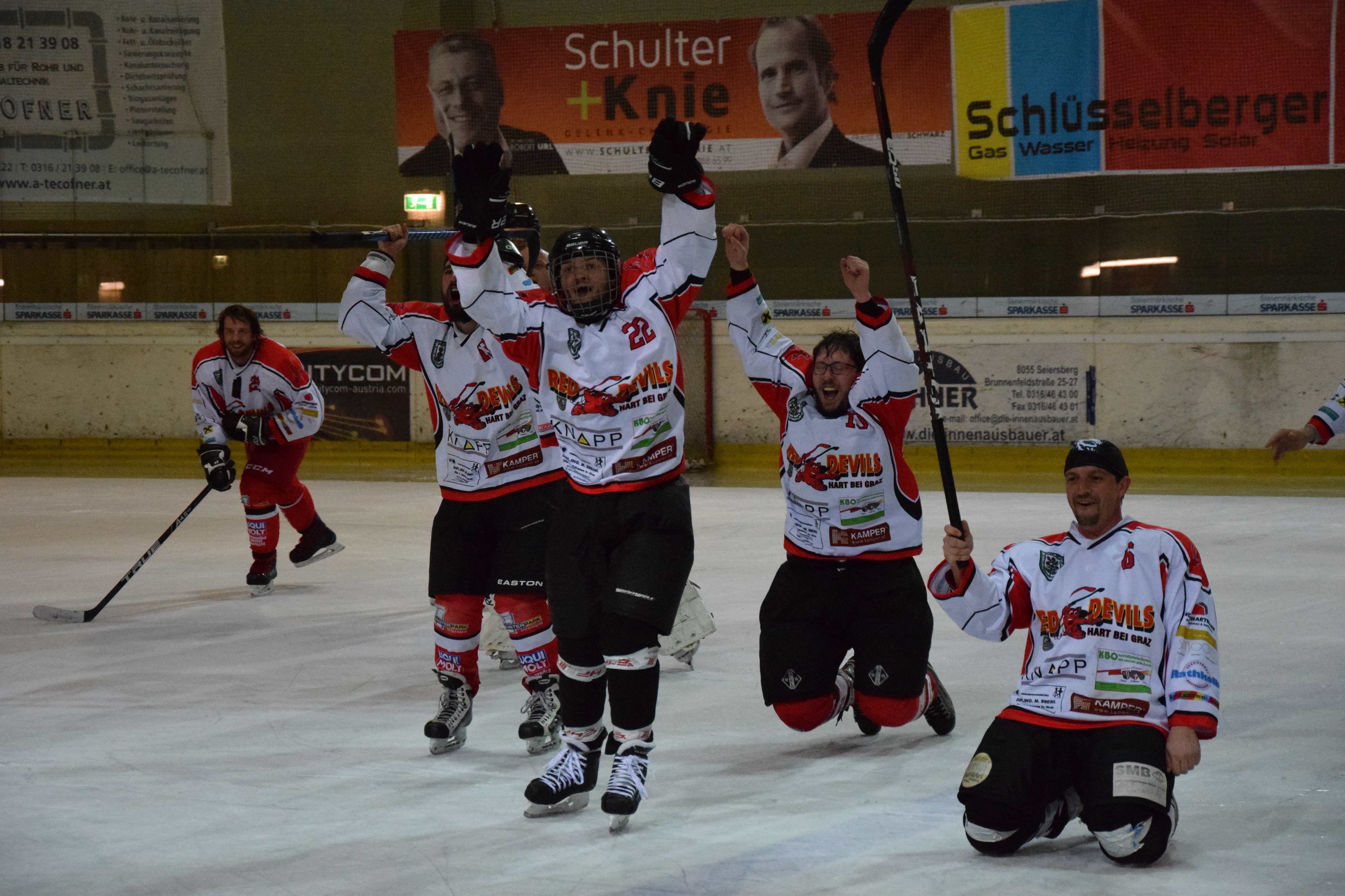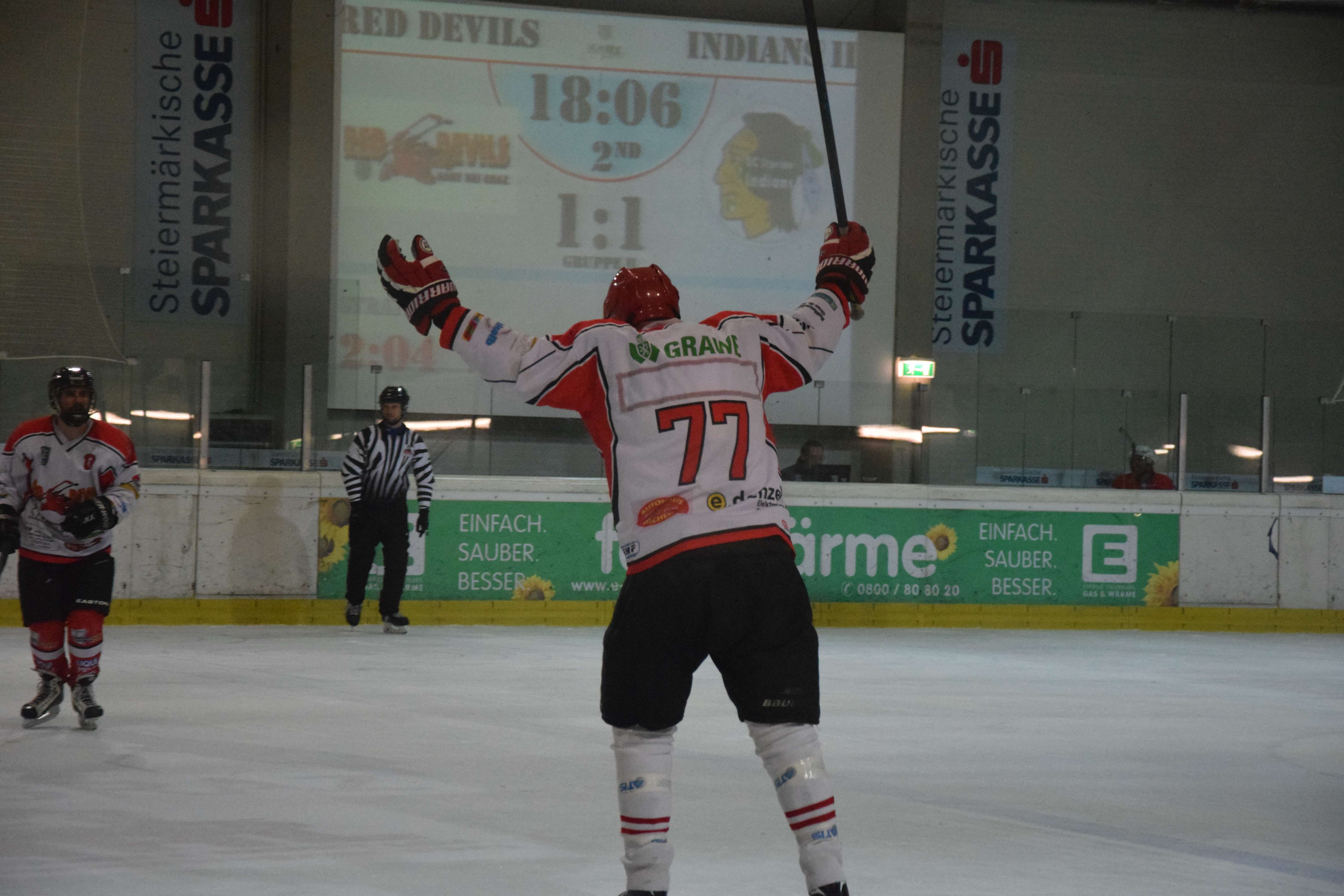 Nach einer intensiven Saison mit stark steigender Formkurve der Devils kam es am Montag den 27.03. zum letzten Playoff-Fight gegen die Indians II. Für beide Mannschaften ging es noch um Platz 2 im Playoff H. Dementsprechend motiviert starteten beide Teams in das Spiel. Den besseren Start erwischten die Indians, die durch einen Alleingang von Wakonig D. (01:31) in Führung gingen. Doch nur 5 min. später wussten die Devils nach einigen gescheiterten Versuchen mit einem sehenswerten "Schupfer" von der roten Linie durch Pleschounig P. (06:30) zu antworten. Im zweiten Drittel ging es hin und her aber keine der beiden Mannschaften wusste ein Mittel, um ihre Chancen in eine Führung umzumünzen. Durch einen satten Schuss von der Blauen Linie durch Klöpfer C. (38:07), der im PP den Weg zwischen Schoner und Fanghandschuh ins Tor fand, war der Bann gebrochen und die Devils gingen erstmals an diesem Abend in Führung. Doch auch diese Führung währte nicht lange. Durch eine Unaufmerksamkeit entwischte der pfeilschnelle Wakonig D. (39:59) erneut unserer Verteidigung und glich für die Indians wenige Sekunden vor der Drittelpause mit einem Shorthander aus. Im letzten Drittel stellte unser Topscorer Gombotz C. (42:24,47:42) mit zwei schön herausgespielten Toren die Weichen auf Sieg. Auch das Tor zum Hattrick von Wakonig D. (53:20) verhalf den Indians nicht mehr gegen stark kämpfende Devils anzukommen. Letzendlich führte eine starke Mannschaftsleistung zu einem verdienten Sieg in unserem letzten Saisonspiel und somit wurde auch der zweite Tabellenrang einzementiert.